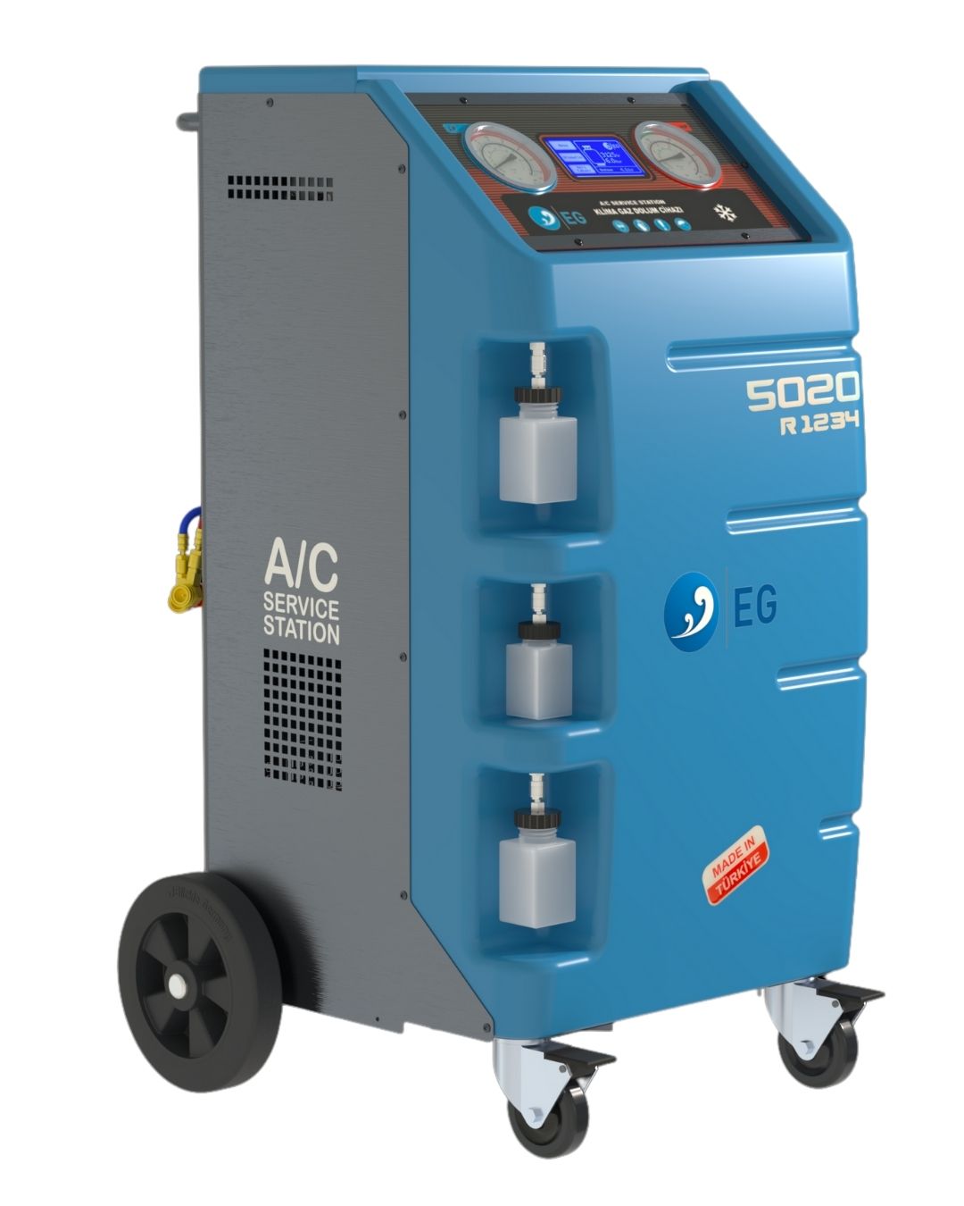 Yeni nesi R1234yf klima gazları için tasarlanmış aerodinamik yapısı, güçlü vakum pompası ve tam otomatik kullanımı ile tam otomatik profosyonel seri bir klima gaz dolum cihazıdır.UV yağı enjekte bidonu ve yazıcısı ile sınıfının en üst modelidir.